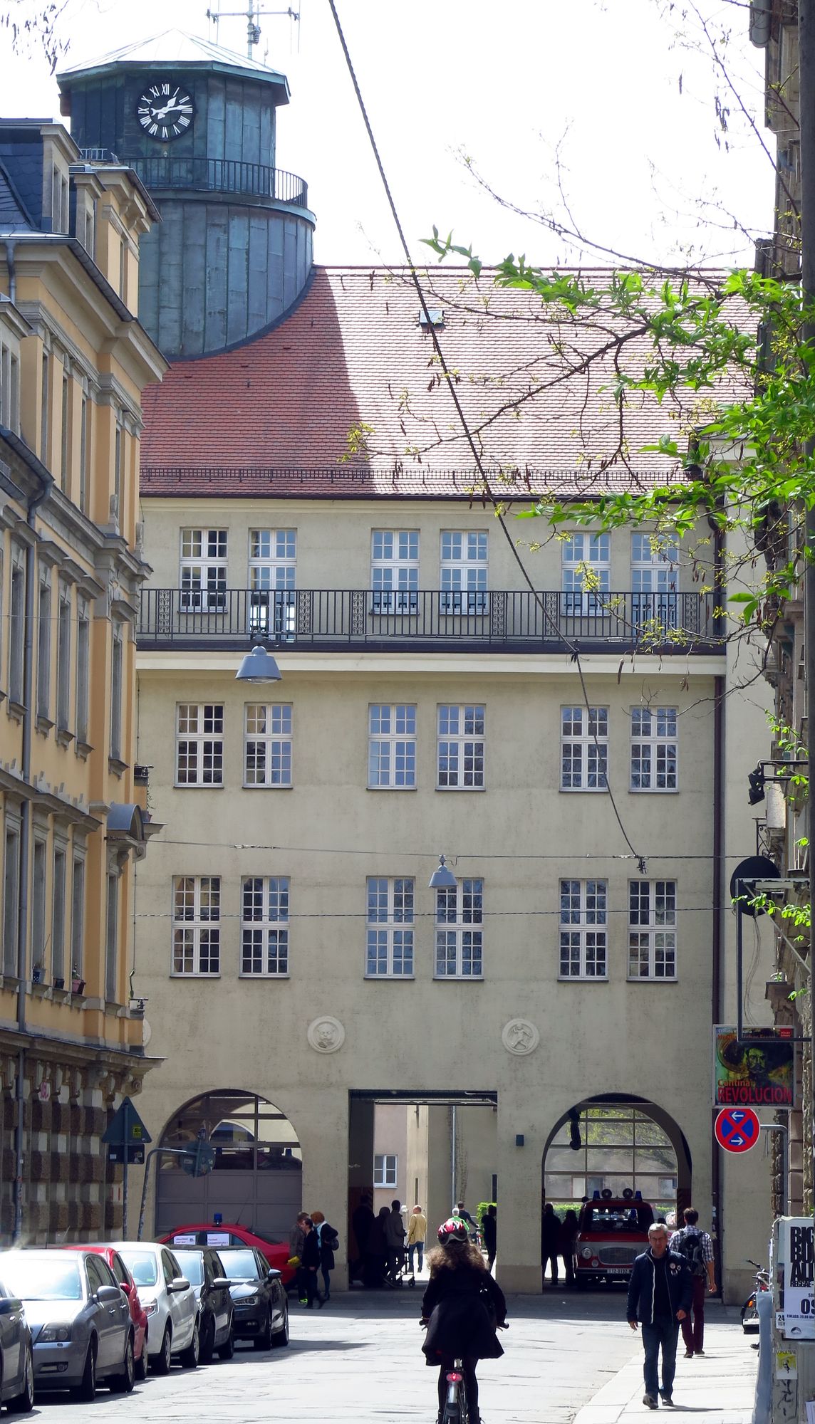 Die Neustädter nutzen die Gelegenheit und gucken sich ihre Feuerwache an. Von hier aus wird nix mehr gelöscht, seit knapp einem Monat ersetzt die neue Wache in der Albertstadt die alte, enge Ausfahrt. Vor ein paar Tagen wurde sie offiziell eingeweiht. Das Gebäude an der Louisenstraße wird jetzt vom Rettungsdienst des DRK genutzt.