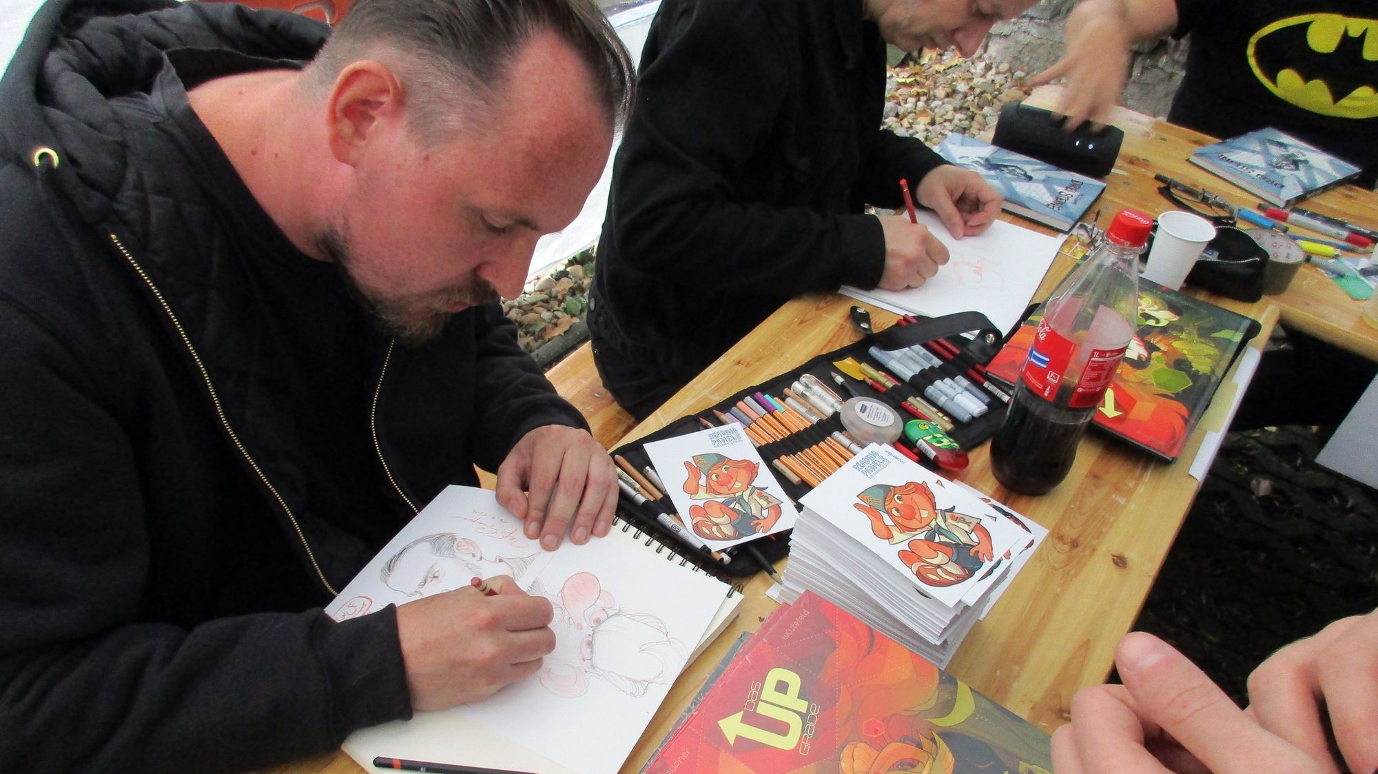 Der Comicladen auf der Bautzner Straße feierte gestern sein zehnjähriges Jubiläum, trotz Regenwetter. Zur Geburtstagsfete lud Inhaber Tobias Reuter die besten Comic-Zeichner Deutschlands ein.