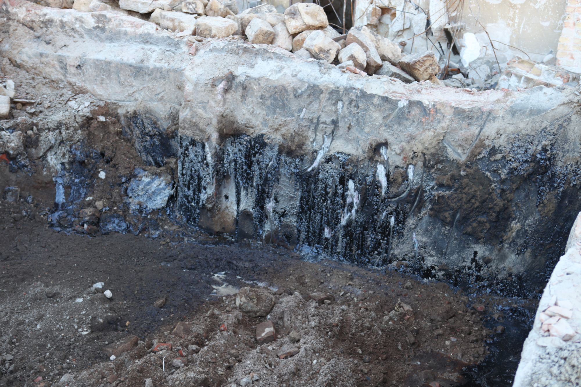 In der ersten Version schrieb ich, dass sich in dem benachbarten Gelände ebenfalls eine Teergrube befand. Das trifft nicht zu, dort wurde ein alter Gasometer entfernt. Ich bitte, den Fehler zu entschuldigen.