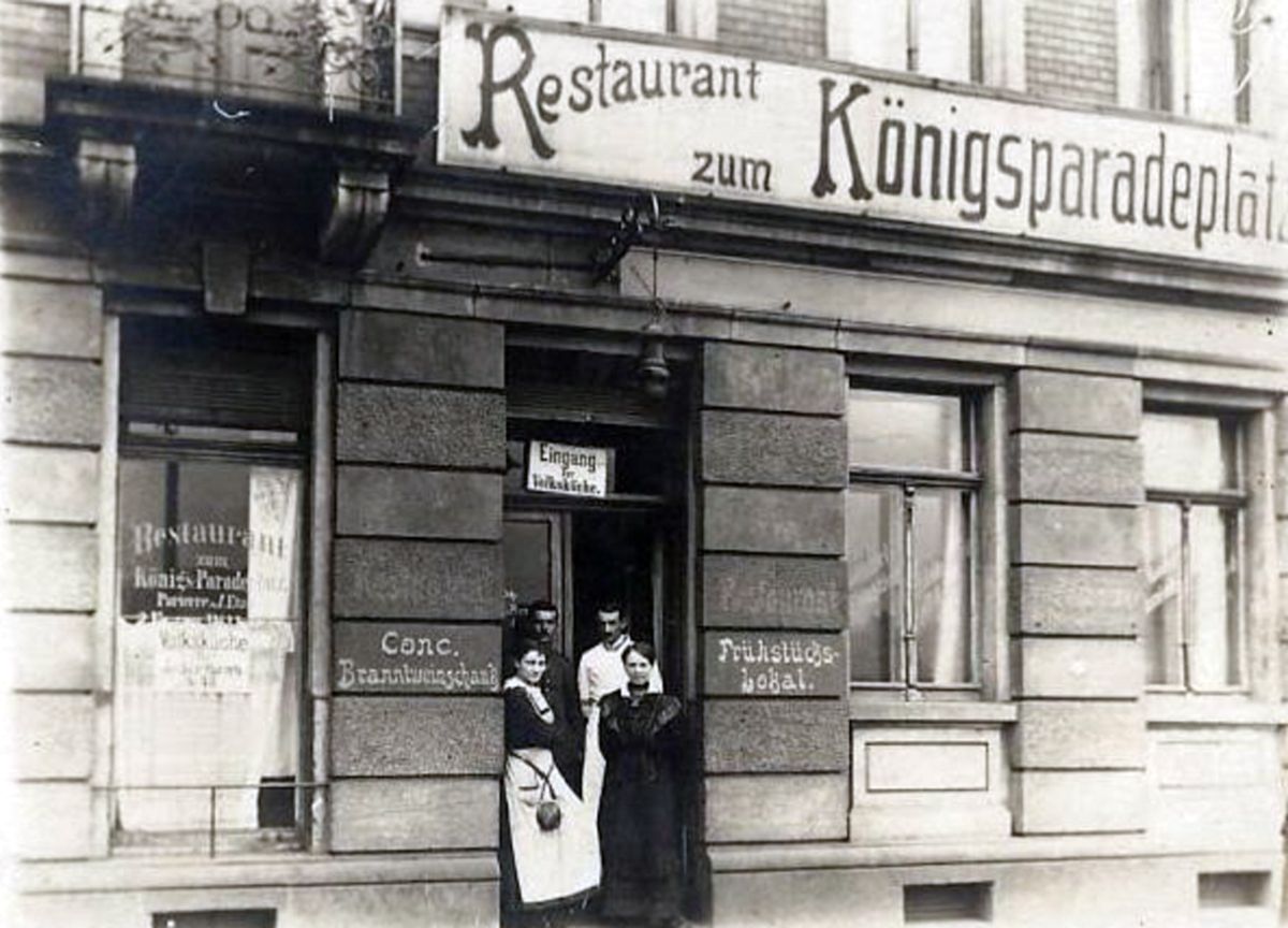 Im Parterre2 hatte der Hausbesitzer Arthur Oehme sein „Restaurant zum Königsparadeplatz“. Nun, der König war zwar schon seit mehr als fünf Jahren kein Oberhaupt des Staates mehr, aber ein kleiner Teil der Reichswehr bewohnte noch auf der Basis des Versailler Vertrages die Kasernen der Albertstadt.