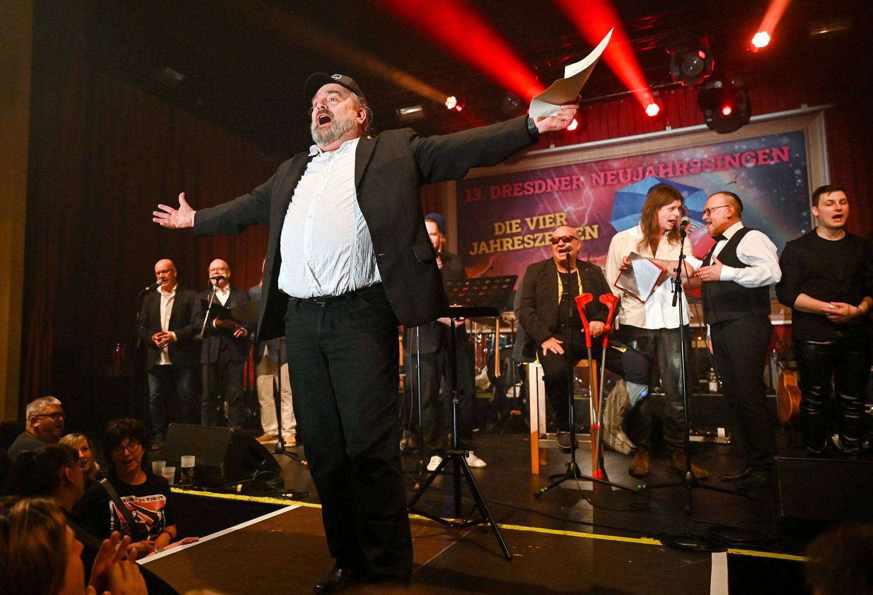 Der Vorjahrsspekulatius war schnell aufgeknabbert, denn das 13. Dresdner Neujahrssingen begann mit Vivaldis „Vier Jahreszeiten“, also dem Leitmotiv der 2024er Edition, dargeboten von einem Streichquartett unter Führung eines gewissen Benni Cellini, im Hauptberuf Rockcellist aus dem Dresdner Mittelalter.