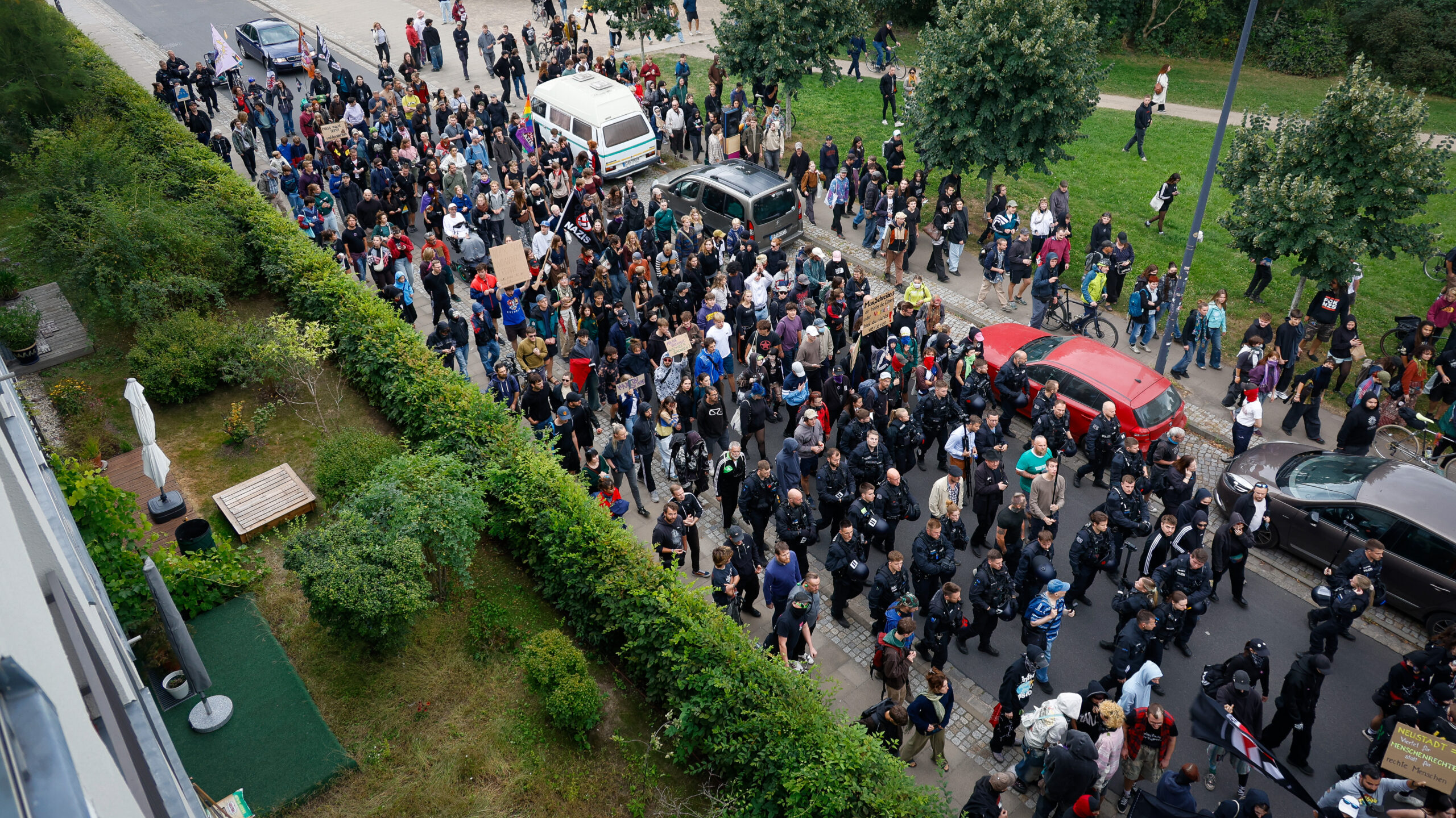 „Es gibt kein Recht auf Nazipropaganda“, machten die unmissverständlich klar und begleiteten Max Schreiber und seinen Trupp, zu dem mehrere Vertreter rechter Medien gehörten, durch den Alaunpark bis über die Hans-Oster-Straße aus dem Viertel hinaus.