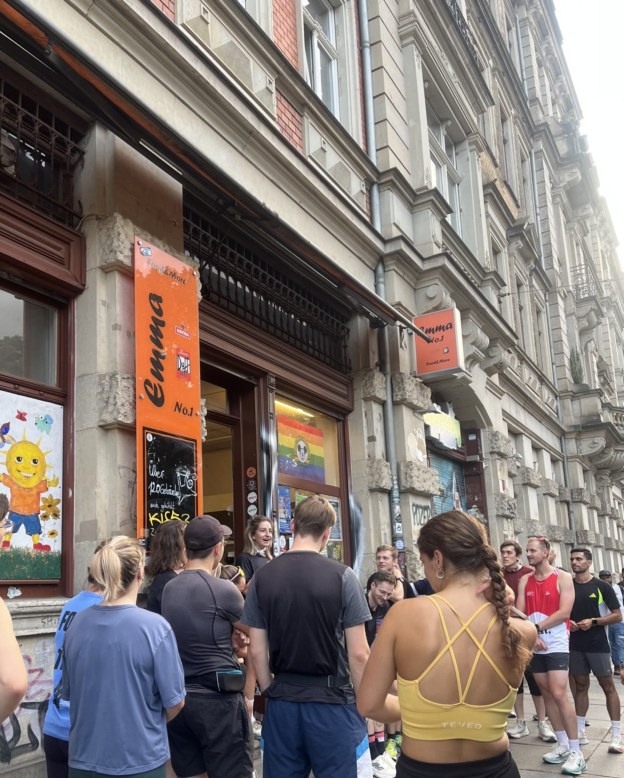 Während die Schlange im Emma No.1 immer länger wird, beginnt sich die Traube der Menschen auf dem Bischofsweg zu vergrößern. Neben ausgelassenen Gesprächen über Alltagsthemen und Lauferfolgen frage ich Maria und Erik nach der Zukunft der Dresdner Kraft Runners.