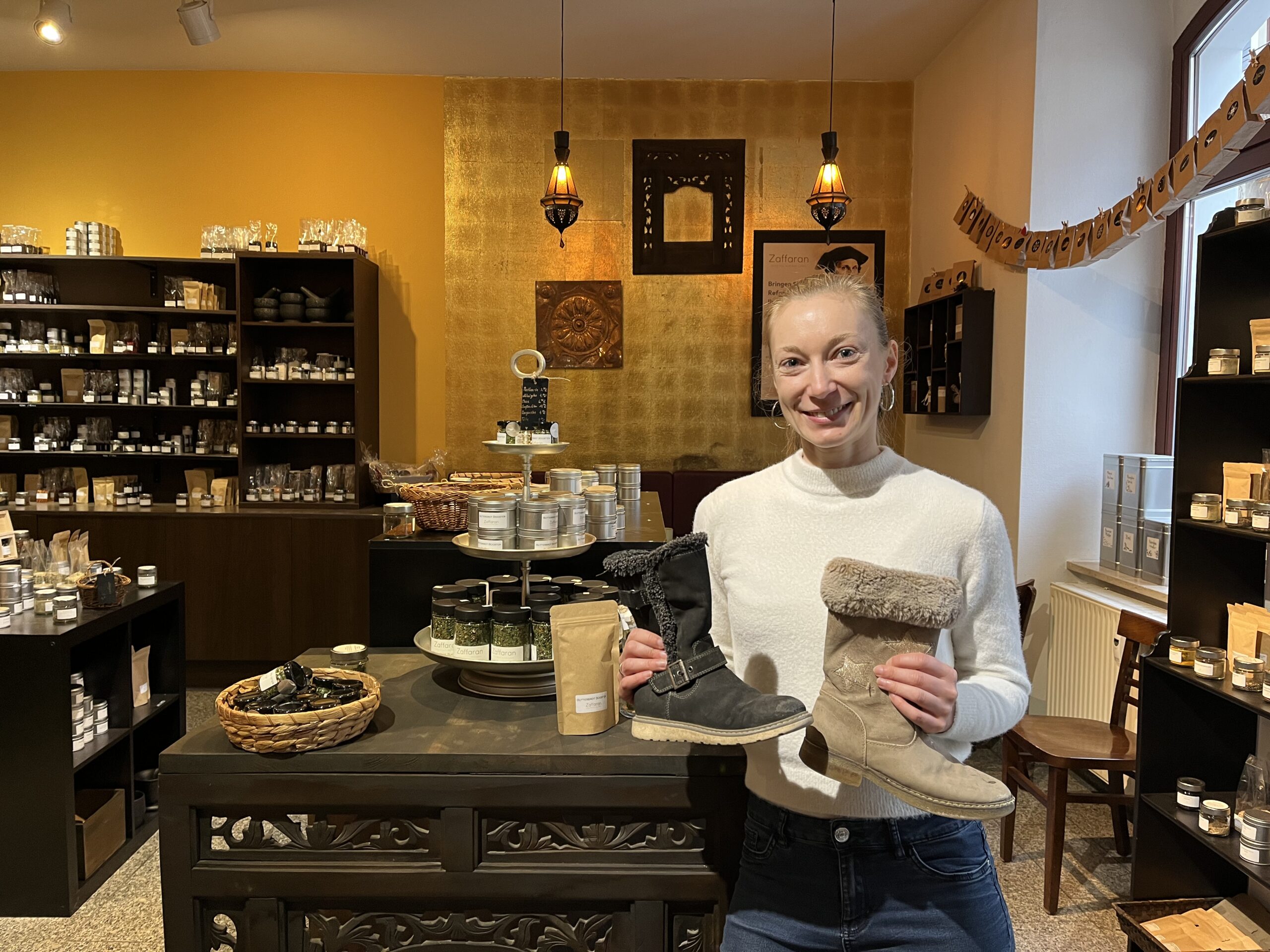 In der Gewürzmanufaktur Zaffaran hängt der Aufruf zur Teilnahme bereits an der Tür, bislang wurden jedoch nur zwei Stiefel abgegeben. Das Team wurde in diesem Jahr relativ spät angefragt, bleibt aber gelassen, denn schon im Vorjahr kamen die Stiefel erst im letzten Moment. Gefüllt werden sie dort mit weihnachtlichen Kleinigkeiten wie Nüssen, Mandarinen oder dem hauseigenen Butterbrotbooster, einer kleinen Gewürzmischung fürs Brot. Besonders freut sich das Team über die neugierigen Kinder, die am Nikolaustag vorbeischauen und fragen, was im Laden so gut riecht – und darüber, dass der Lauf die Geschäfte im Viertel wieder stärker miteinander verbindet.