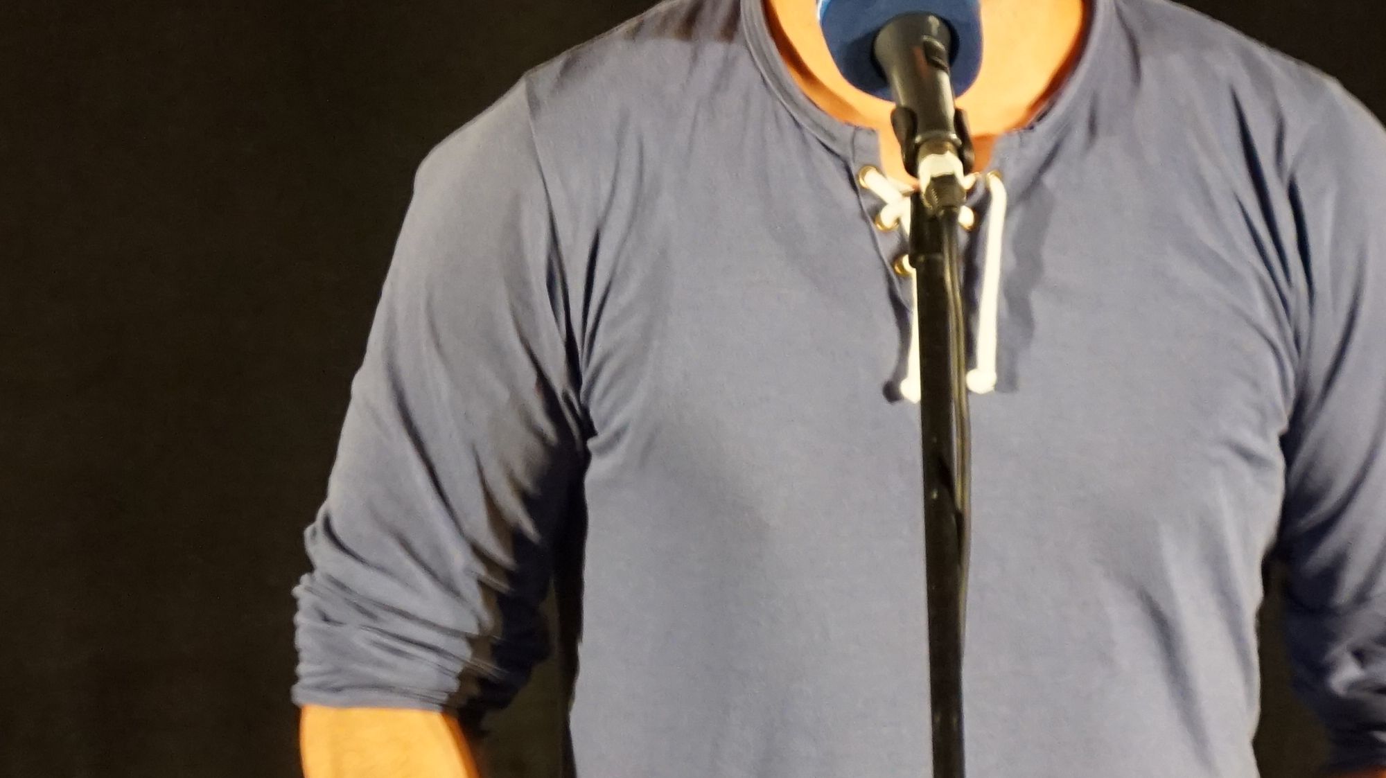 Im Lichte der bevorstehenden Landtagswahl trugen sieben Künstler unter dem Motto „JEIN“ politische Texte vor, die Raum für gedankliche Bewegung schafften: nach links, nach rechts, die Treppe rauf und dann doch wieder zurück in den Keller. Dort angekommen, freute man sich, dass man im heimischen Bunker gut die Wahlperiode eines Abgeordneten überleben könnte. Hauptsache weg von den Dingen, die man nicht sehen möchte. Vier Jahre lang verführt uns nun die Einsamkeit zu Racheplänen. Rache an der Gesellschaft, die uns in den Keller brachte. Mit „Die Schuld seiner Sühne“ eröffnete der Moderator persönlich den poetischen Schlagabtausch, so ernst hat man den Entertainer selten auf der Bühne erlebt. „Das sind doch große, starke Hände. Doch könnt ich sie nicht halten, meine Unschuld…große Starke Hände voller Blut…Bullshit! Die Gesellschaft hat dich zu dem gemacht, was du heute bist!“ Es ist der Ruf nach Humanität, den er in Worte kleidet. Geglaubt aus Rache handelnd, sich doch als Mörder fühlend, frisst die Schuld den Protagonisten schließlich auf. Nun ist es die Schlinge, die ein Menschenleben auf dem Gewissen hat, die Schlinge der Gesellschaft. „Du bist niemals Mörder, er war nur Soldat“, Thomas geht, die Gänsehaut bleibt.