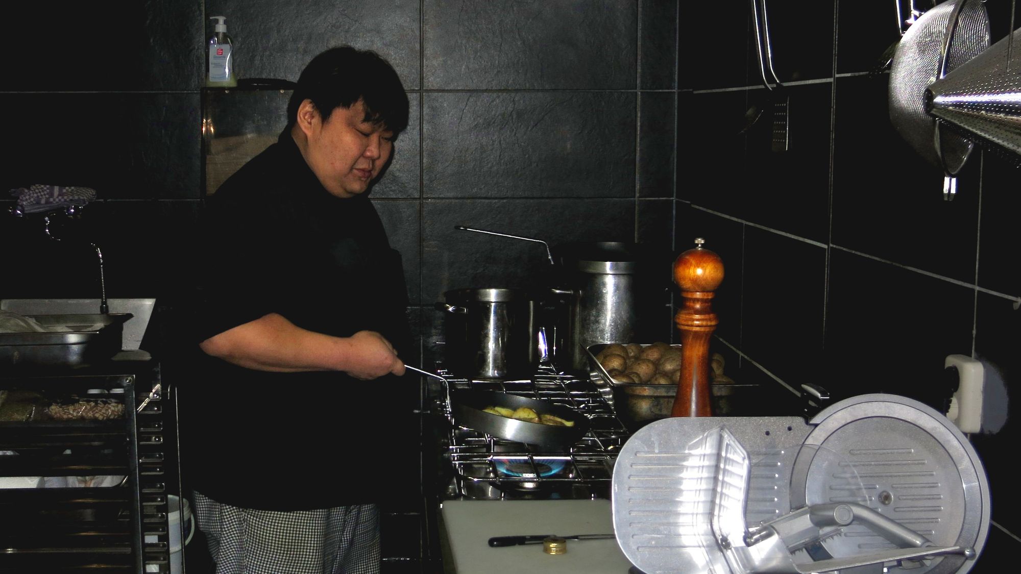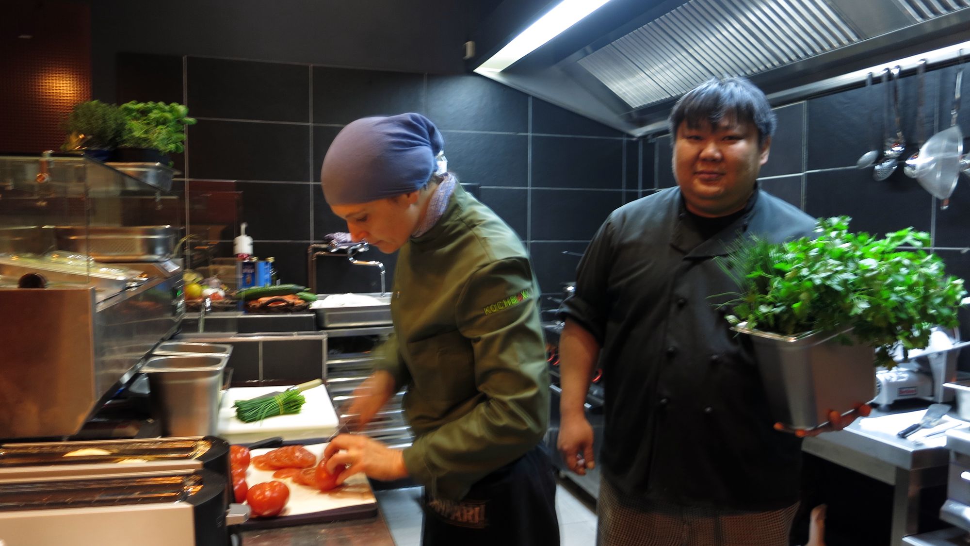 Seit Dienstag hat die Kochbox in der Görlitzer Straße 4 geöffnet. Der erste Eindruck: Der Laden ist im Vergleich zum alten Amsterdam kleiner geworden und die Hähnchen-Grillstangen sind verschwunden. Inhaber Jan Herrmann zeigt mir die Räume hinter der „Personal-Tür“, hier kann er sich perspektivisch noch einige kulinarische Überraschungen vorstellen. Jetzt sollte aber erstmal aufgemacht werden. Am Herd hantieren die bekannten Gesichter von gegenüber.