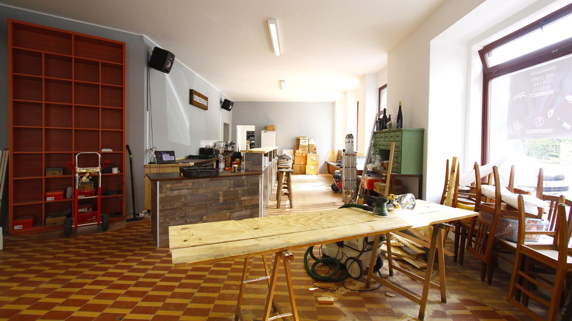 500 verschiedene WeineDas Hauptgeschäft ist der Wein, 500 verschiedene Sorten sind in der Weinzentrale versammelt. Und montags soll es die alle als offenen Wein geben, die beste Gelegenheit, um mal einen Tropfen zu probieren, bei dem man sich nicht gleich an eine ganze Flasche herantraut. Pietzonka hat der Weinzentrale ein strenges Wochenprogramm verordnet: am Dienstag wird es dann die Weinbörse geben, mit schwankenden Preisen, am Freitag werden dann alle schon offenen Flaschen beim „Restesaufen“ verhökert. Am Wochenende bleibt die Weinzentrale geschlossen, diese Tage bleiben angemeldeten Feiern vorbehalten. Insgesamt 40 Personen finden in der Zentrale Platz, das Ambiente erinnert so gar nicht mehr an den alten Lampenladen, der riesige Tresen dominiert den Raum. Für die restlichen Sommertag wird es auch vor der Tür ein paar Plätzchen geben. „Die Eröffnungswoche ist leider schon fast ausgebucht“, hebt Pietzonka bedauernd die Schultern. Einzig zur gemischten Bude am Dienstag mit Weinen aus Sachsen gäbe es noch ein paar Restplätze. Dann verweist er aber auf die offene Weinbar, jeden Tag ab 21 Uhr für Spättrinker.