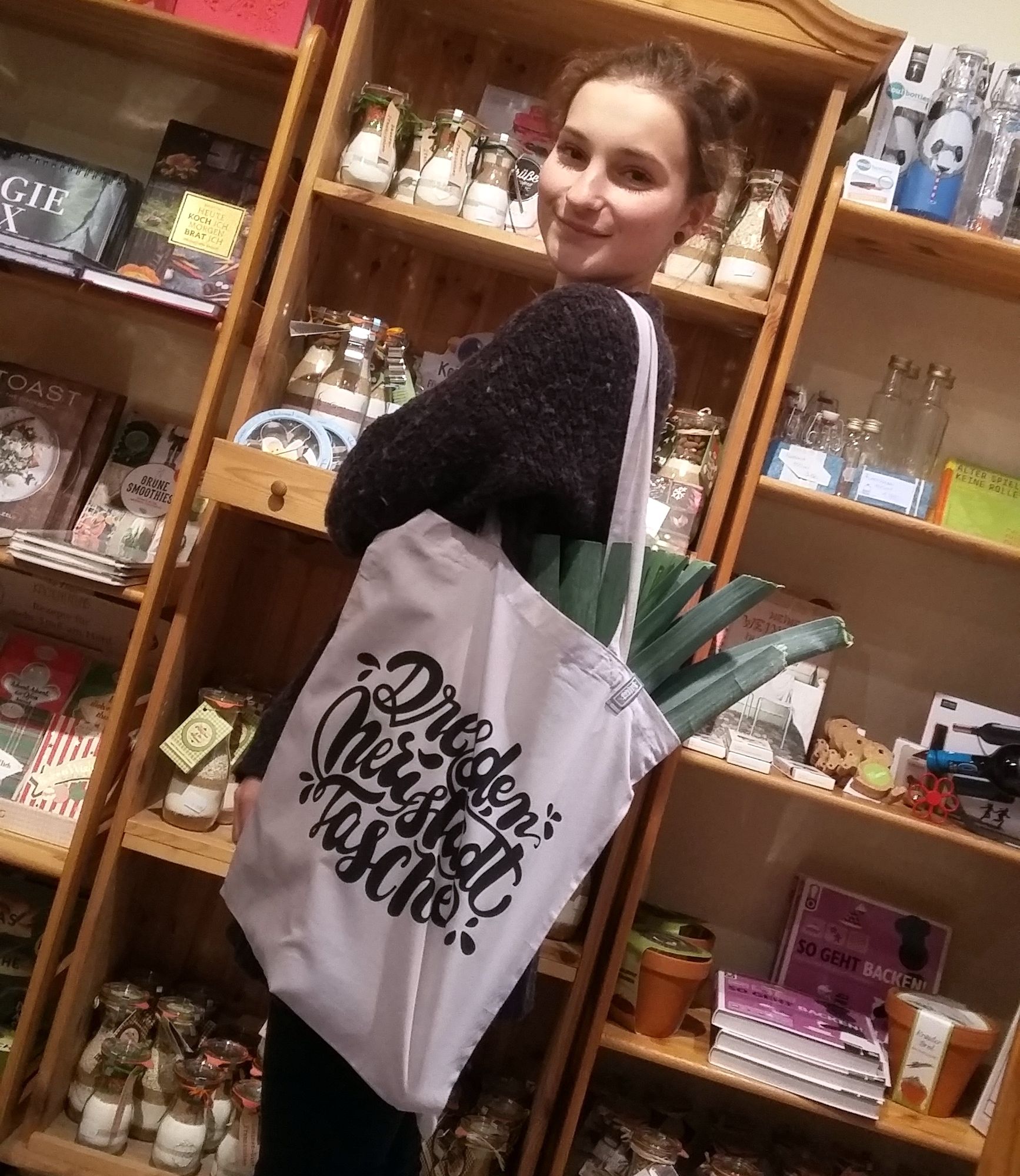 Am Anfang stand der Slogan „DRESDEN NEUSTADT BAG“ – der fiel bei ersten Stichproben spontan durch. So wurde dann die „Dresden-Neustadt-Tasche“ geboren. In einem schönen verschnörkelten und völlig untrendigem Design kommt diese nun daher. Dafür gibt’s verschiedene Farben. Die Beutel sind aus Baumwolle, per Siebdruck verziert und bei 30 Grad waschbar. Bitte links bügeln. Vorerst nur im Catapult an der Rothenburger Straße für weniger als 10 Euro zu haben.