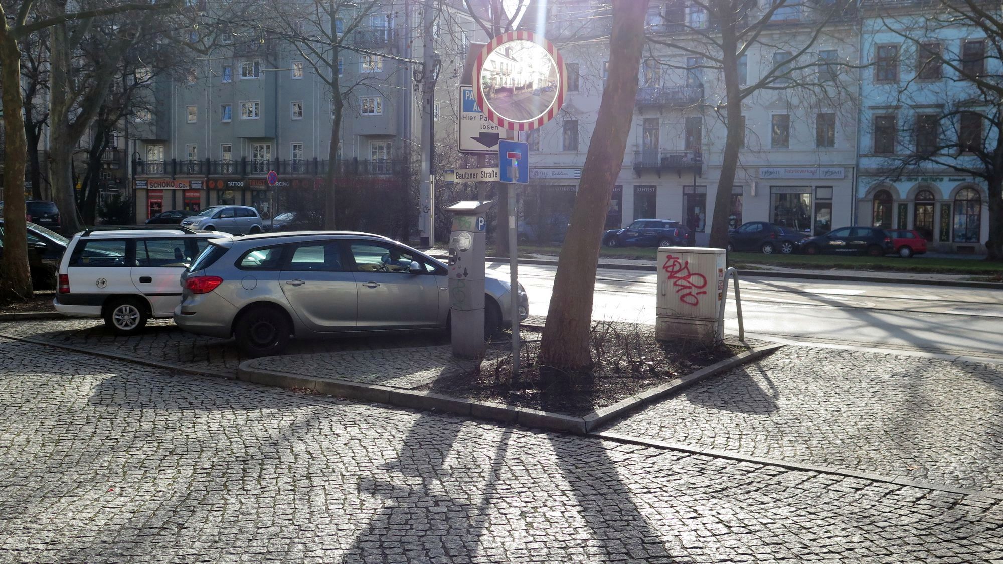 Die 220 Meter zwischen Albertplatz und Rothenburger Straße sollen erneuert werden. Im Wesentlichen soll die Fahrspur etwas breiter werden, aber die Bäume erhalten bleiben. Grund für die Verbreiterung ist der neue Gleisanbstand von 3,00 Metern und ein Radfahrer-Schutzstreifen von 1,50 Metern. Für die Autospur bleiben dann noch 2,25 Meter übrig. Die Verbreiterung hat zur Folge, dass die sogenannte „Kleine Bautzner“, die Parallelstraße vor den Geschäften schmaler wird und die Längsparkplätze am Fahrbahnrand entfallen. Dort ist derzeit überwiegend eingeschränktes Halteverbot. Weitere Infos unter dresden.de Fahrraddenkmal an der Bautzner Straße. Foto: ADFC Sachsen e.V.Mit Baubeginn ist nicht vor 2017 zu rechnen. Eine Regelung zur sichereren Verkehrsführung für Radfahrer über die Kreuzung Rothenburger-/Bautzner Straße wird es vermutlich aber schon eher geben. Wie Konrad Krause vom ADFC mitteilt, wird in der Stadtverwaltung eine kurzfristige Korrektur der Radverkehrsführung geprüft. Am 8. Februar war an der Kreuzung eine Radfahrerin bei einem Unfall ums Leben gekommen.