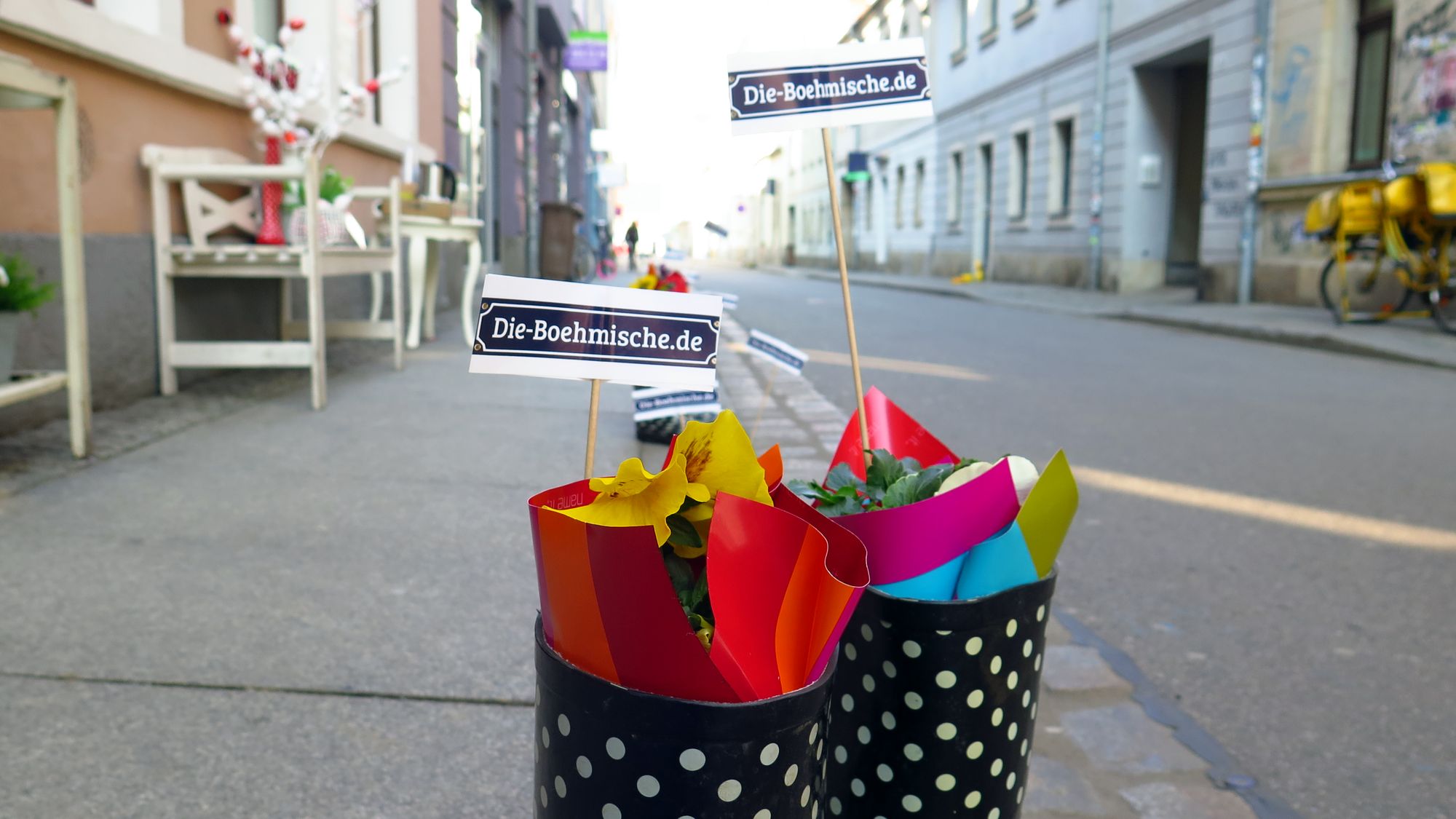 Im Vorjahr hatten sich zwölf Händler zusammengetan. „Die Böhmische Straße ist nicht so bekannt, da wollten wir etwas tun“, erklärt Elisabeth Robra vom Atelier für Schmuckgestaltung. Neben der Frühjahrsblüherbegrüßung gab es noch weitere Aktionen, wie ein Freiluftatelier und einen Adventstkalender.