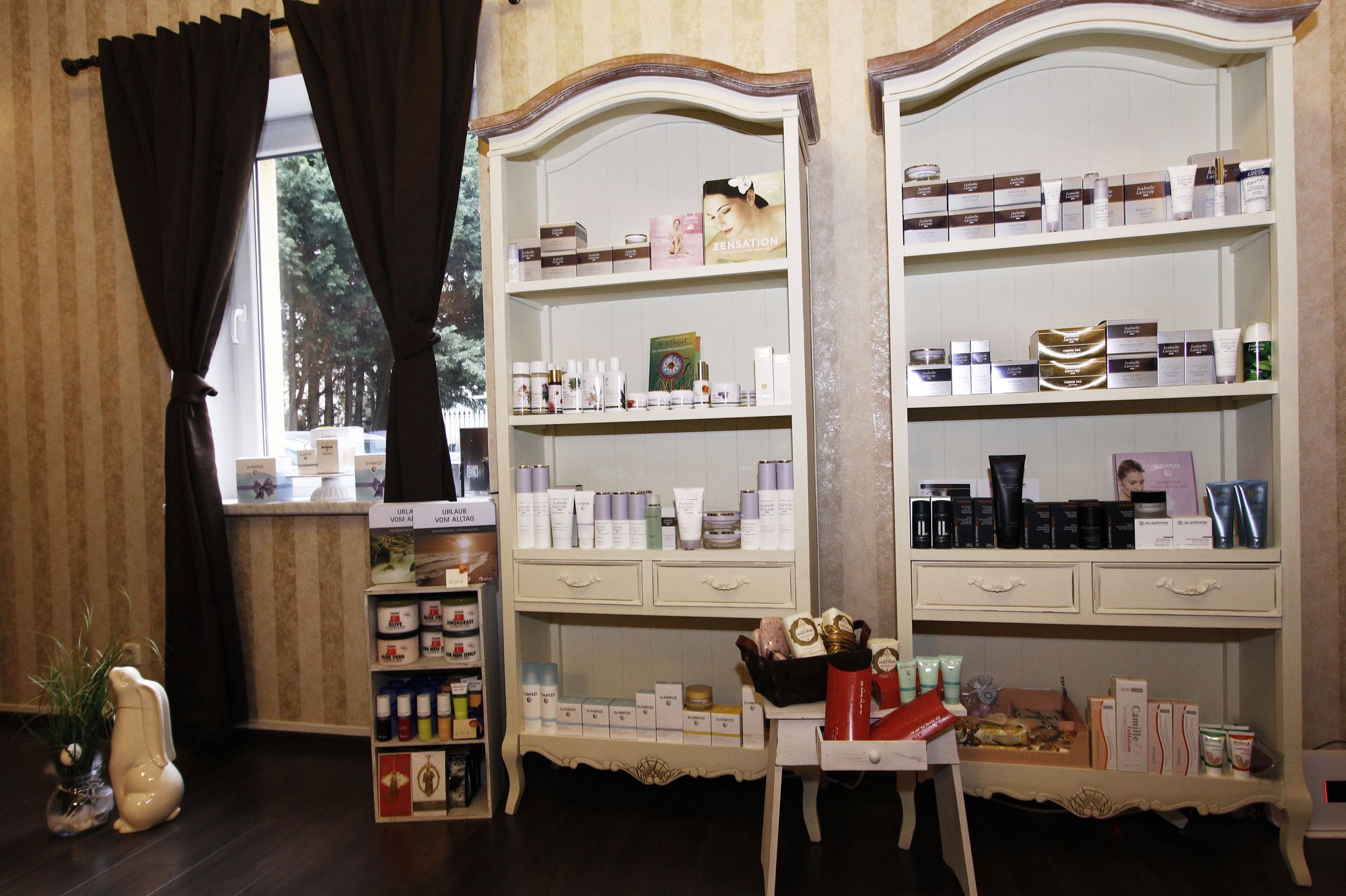 Sie zeigt ihre Räume, der Massage-Raum erinnert an eine Wellness-Oase in einem abgelegenen Bergdorf. Kaum zu glauben, dass ein paar Meter weiter Züge über den Bahndamm rauschen. Das Empfangszimmer scheint ein gelebter Mädchen-Traum zu sein. Tausende Nagel-Lacke, Cremes, Püderchen, eine tuffige Tapete und ganz viel beruhigende Farbtöne. Erstaunlich, aber das scheint auch immer mehr Männern zu gefallen. Der Anteil an der Kundschaft ist zwar gering, aber er wächst. Im Gegensatz zu vielen anderen Studios hat sich Nivin nicht auf eine bestimmte Kosmetik-Linie festgelegt. Naturprodukte spielen immer stärker eine Rolle.