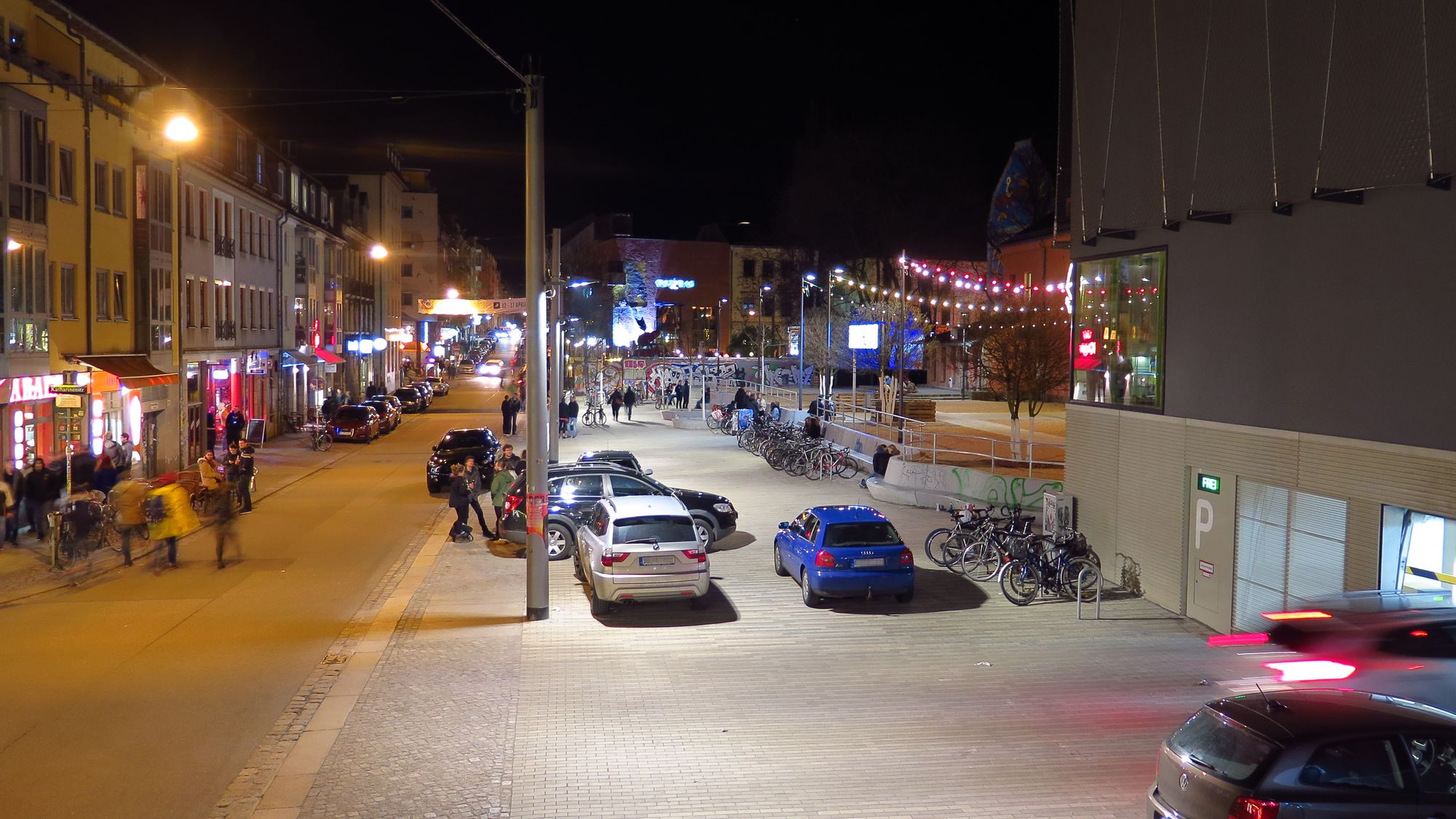 Toller Autoparkplatz & die Radständer als Sichtschutz für die Sitzenden. Klasse gemacht!