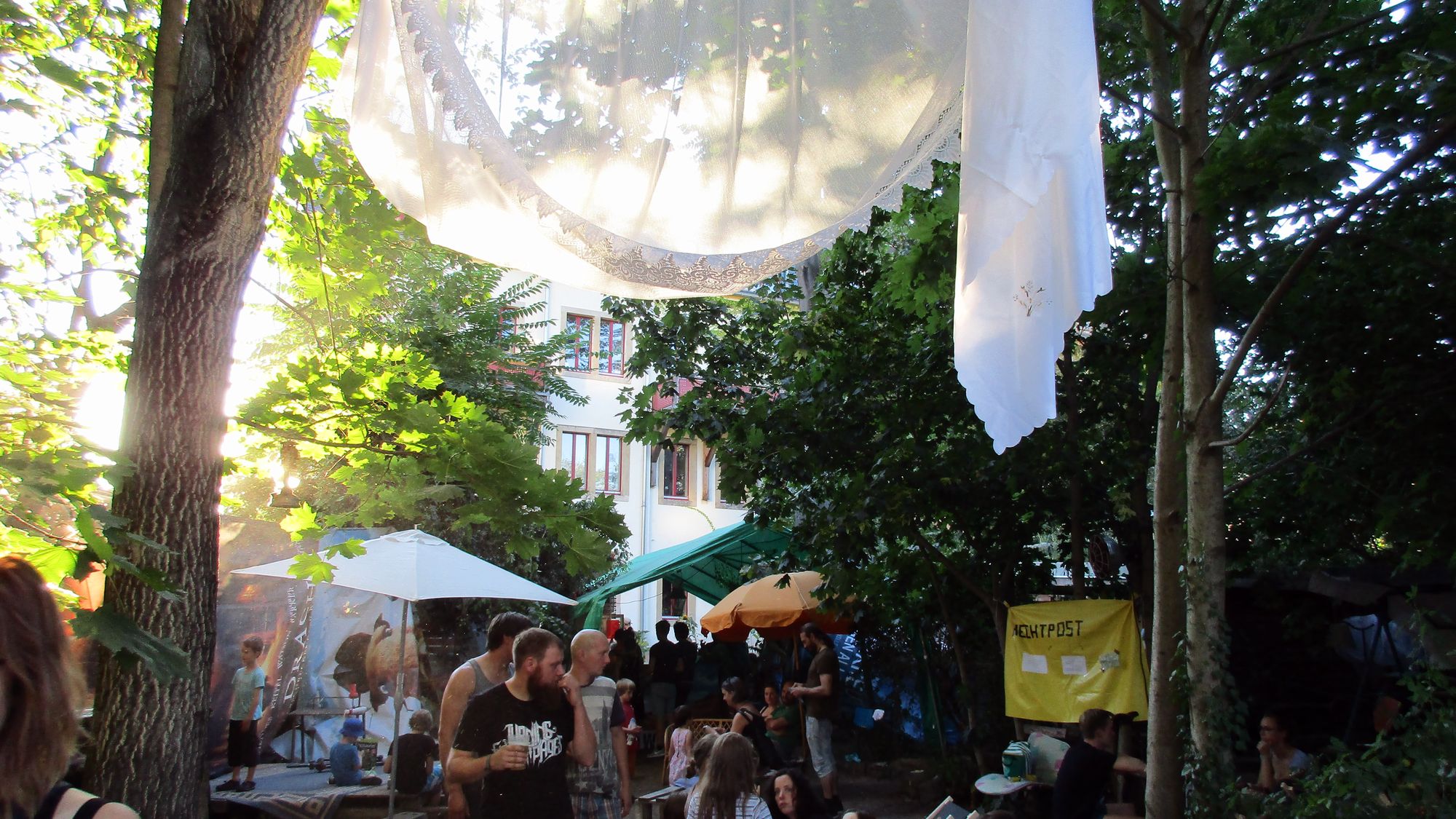 Was das Hechtival und das Festivalfeeling auf dem Spielplatzgelände betrifft, so ist das zu großen Teilen auch dem Team Syn.Thie.Verrückt zu verdanken. Die haben nämlich eine ganze Woche und verdammt viel Liebe und Mühe in die Gestaltung und Deko gesteckt, ich habe selbst miterlebt, wie das bis Freitag abend noch fleißig am wahnsinnig geilen Chillout-Bereich gebaut wurde- das ganze dann am Sonntag in Gluthitze wieder abzubauen, ist sicher auch kein Spaziergang und das alles bei gemeinnütziger Arbeit nicht selbstverständlich.