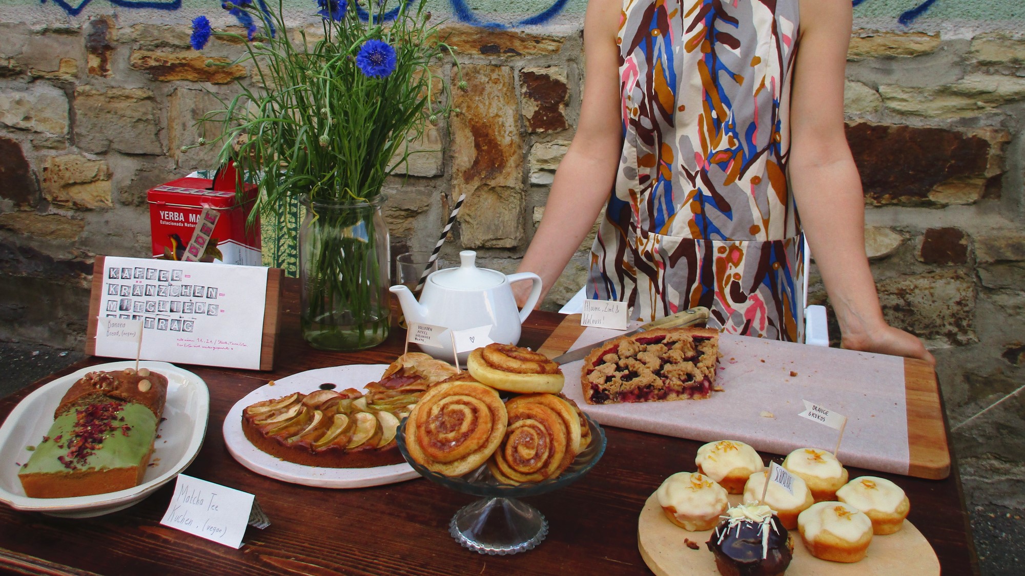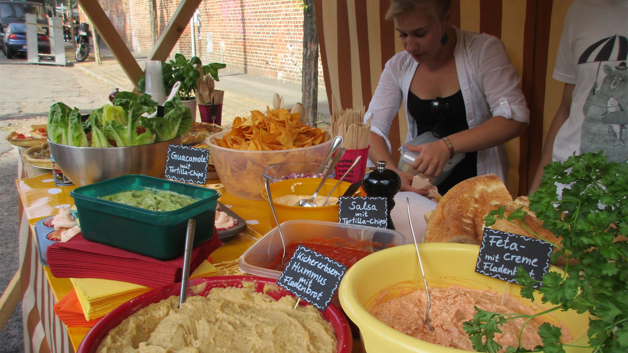 Anstatt wildem Gedränge herrscht gemütliches Gewusel. An mancher Ecke vermengt sich Raggae mit Rock und Techno, an anderer Stelle geben die kleinsten Anwohner ihre musikalischen Künste zum besten. Als ich Kohldampf bekomme, schaue ich, was es an Fressalien gibt. Ich entdecke den Stand zweier Rudolfs und probiere mich durch deren französische Quiche, arabischen Bulgur-Salat und türkischen Aufstriche mit Fladenbrot (alles selbstgemacht!). Ein paar Meter weiter genieße ich zum Dessert eine Zimtschnecke, die um einiges besser schmeckt als die Ikea-Schnecke. Als Dank geb‘ ich der Bäckerin einen kleinen Obolus. Auch in diesem Jahr galt bei Rudolf Rocks das Prinzip der freiwilligen Spende.