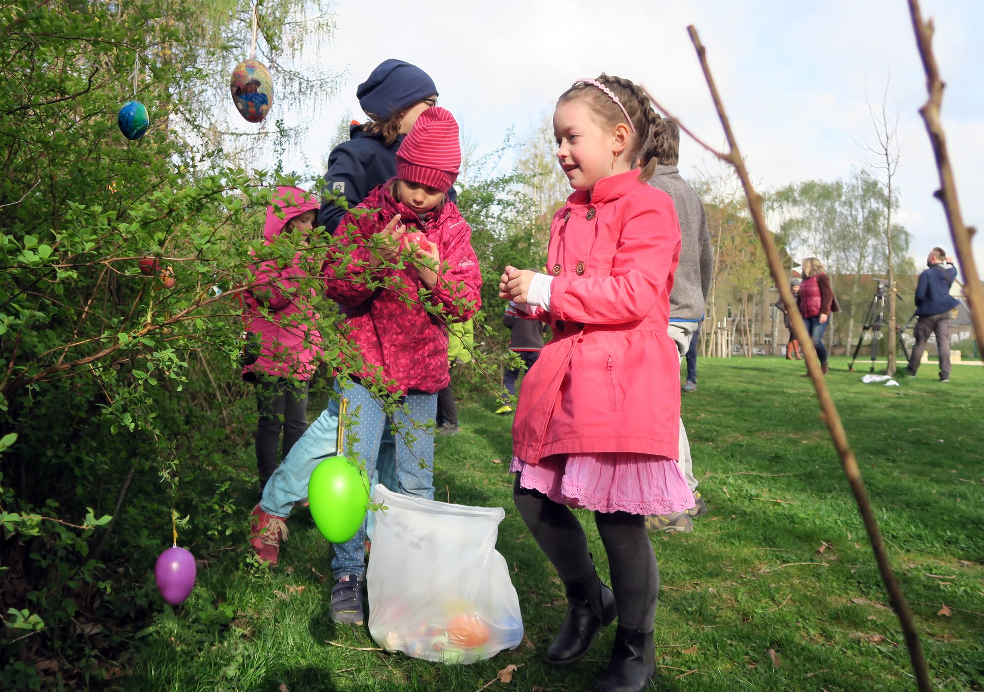 „Wir sind auf den Aufruf aufmerksam geworden“, berichtet die Lehrerin. Mit einem Plakat hatten Unbekannte gefordert, den Park zu schmücken. Mal sehen, was die Osterhäschenarmee am Wochenende dazu sagen wird.