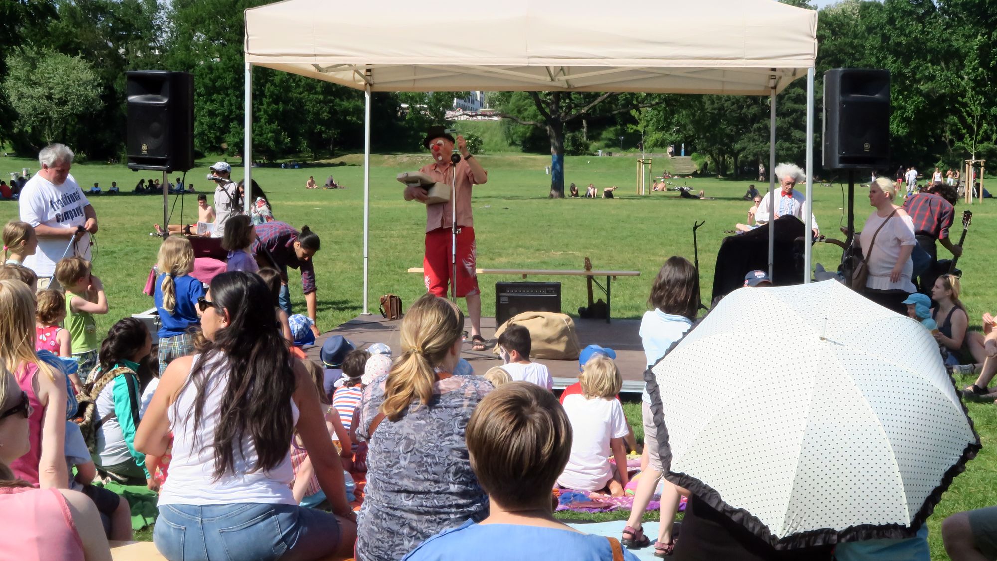 An den Schmink- und Maltischen wurden Kindergesichter und Papier verziert. Und auch die eine oder andere stolze Mutti hatte anschließend ein paar Farbtupfer im Gesicht. Auf der kleinen Schowbühne trotzten die Clowns, Musiker und Pantomime Rainer König der Hitze.