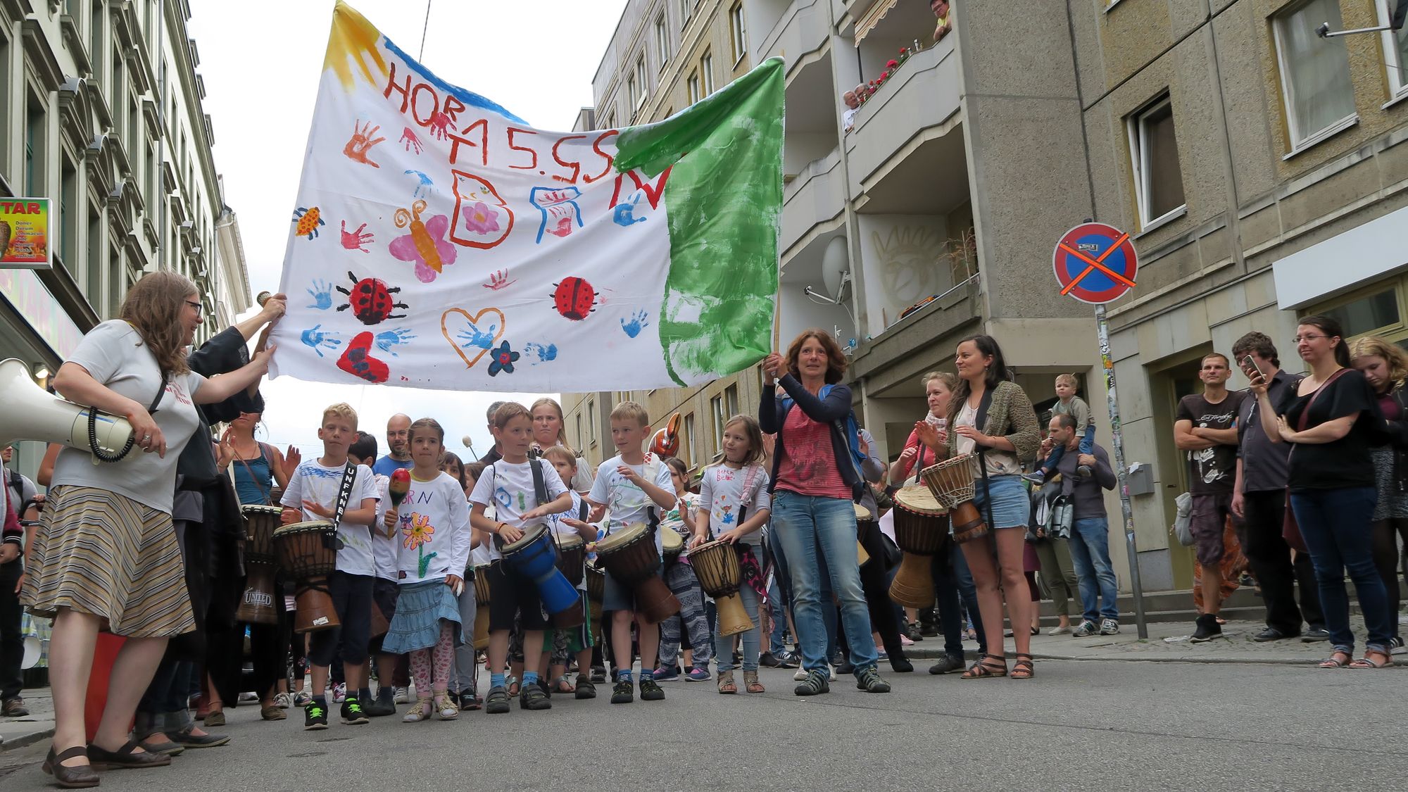Vor Jahren gäbe es mal Absprachen, dass die verschiedenen Veranstalter sich zum Ablauf der „Beschallung“ abstimmen. So musste aber Tir na nog gegen drei Beschaller an der Alaunstraße 24/25 kämpfen!!