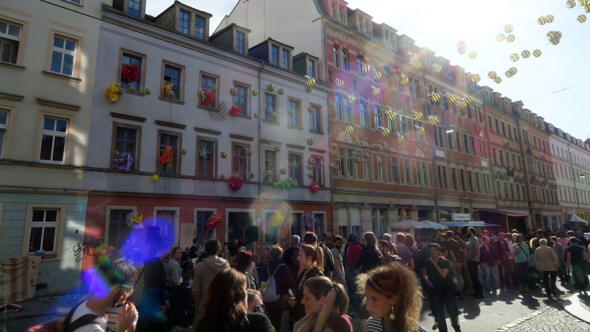 Mehrfach hörte ich den Wunsch nach mehr Livemusik. „Nicht immer dieses Bumm, Bumm, Bumm“, wie mir ein etwas angetüdelter Mitvierziger zuraunte. Aber die jungen Leute stehen da drauf. Vor den Bumm-Bumm-Bühnen auf der Görlitzer, der Rothenburger und der Alaunstraße tanzten die Massen. Und dabei meist ausgelassen.