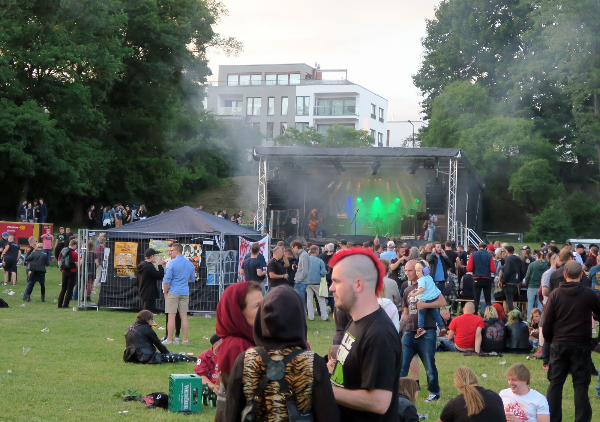Tanzen ohne Rücksicht auf die Ohren.Das Weniger an Ständen schuf aber auch Platz für diverse Straßen-Minikonzerte mit teils zweifelhafter Qualität aber hohem Engagement. Eins fällt auf. Die Besucher der Bunten Republik sind mächtig jung. Während am Tage die ganz jungen Kerlchen vor allem auf der Schönfelder und Talstraße und dem Martin-Luther-Platz dominierten, kamen am Abend die Teenies.