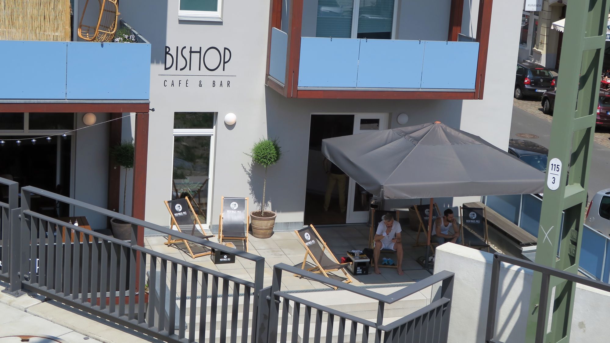 Auf den winzigen Platz gehören aber Fahrradstellplätze, nicht Biertische!