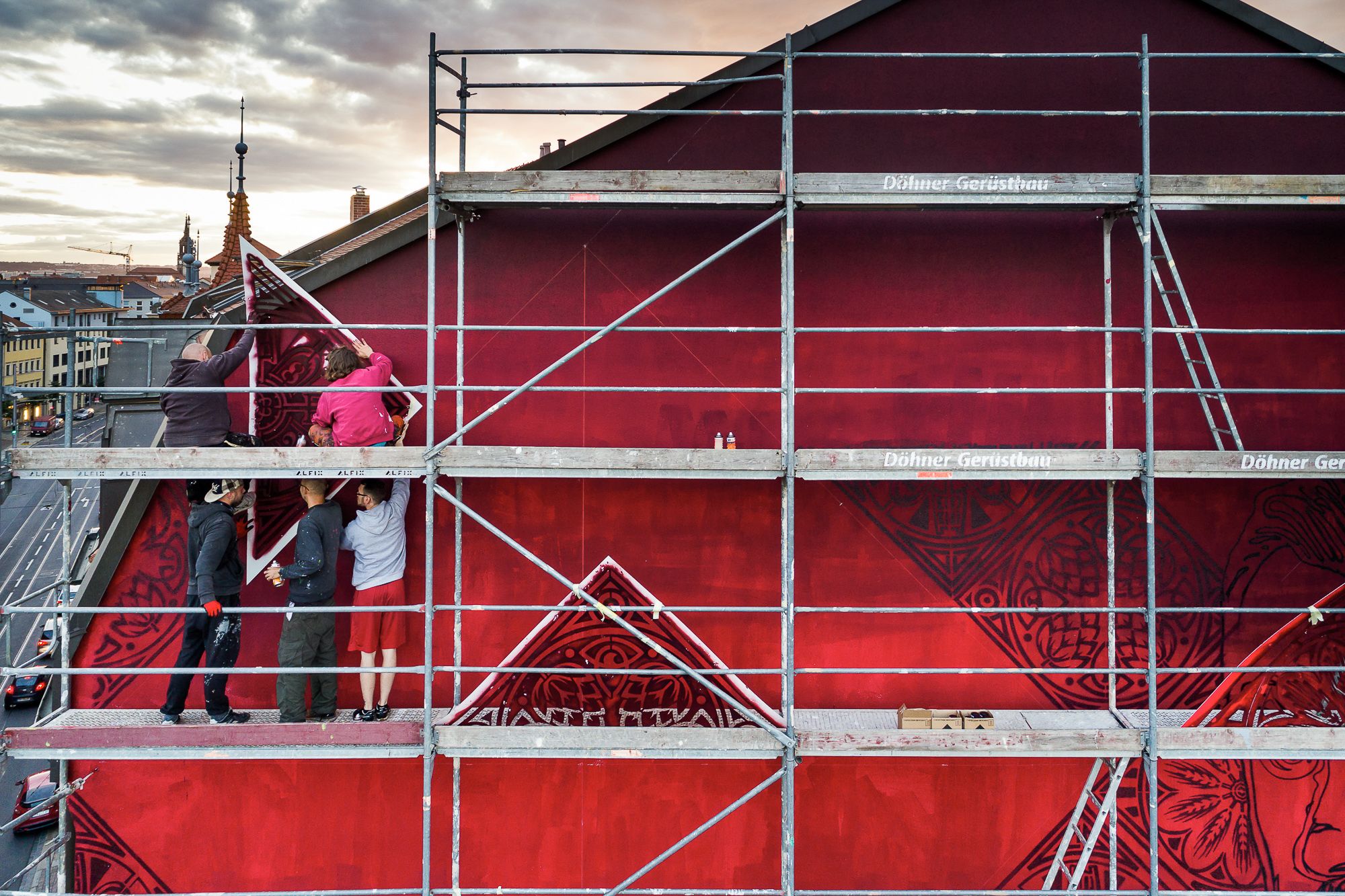 Der Künstler und Siebdrucker Lars P. Krause, auch als Douze bekannt, ist mit dem Ergebnis sehr zufrieden. „Von der Farbe bis zum Muster ist alles nach meinem Geschmack“, grinst er und berichtet, dass er jeden Tag vorbeigefahren ist und die Arbeitsfortschritt überprüft hat.