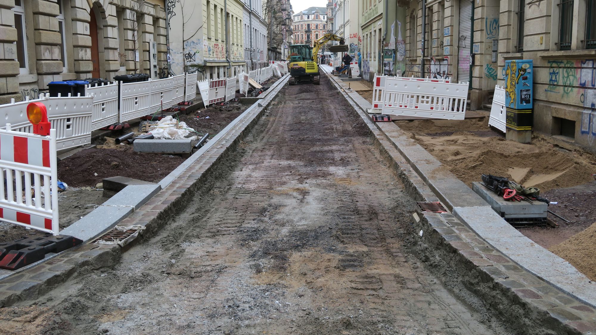 Unterdessen haben auf der Martin-Luther-Straße erhebliche Grabungen begonnen, offenbar werden dort auch gleich noch ein paar Kanalarbeiten vorgenommen. Ursprünglich sollte diese Baustelle im Januar 2018 abgeschlossen werden.